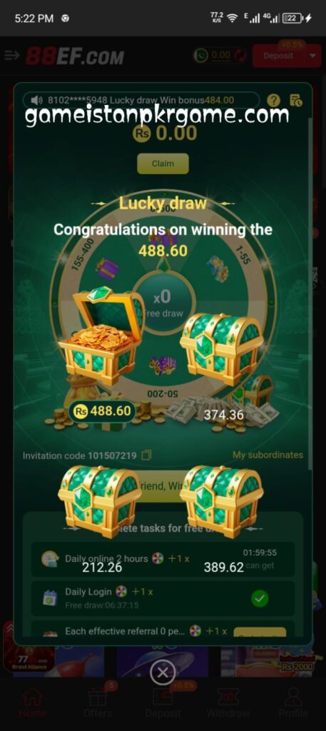 In Pakistan, this platform is known as an online gaming and reward-based application that allows users to play games and earn money in different ways. The 88EF app brings many games together in one place, so users do not need to download multiple apps.